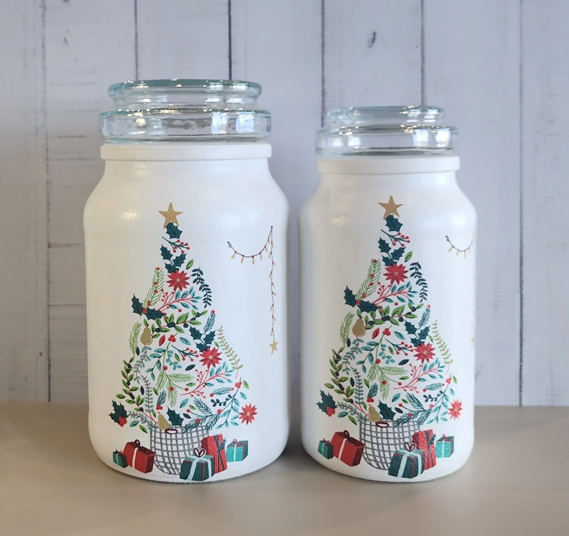 Our Jars are collected locally, cleaned thoroughly, then painted and decorated using a decoupage technique. The item is then coated with sealant so it can be cleaned with a damp cloth when required.